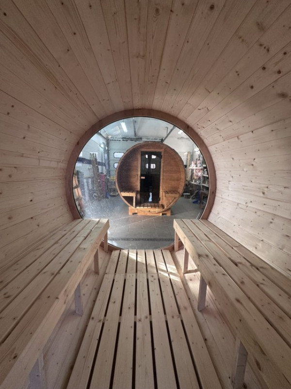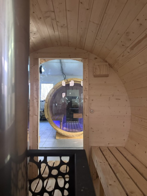 Kopułowa szyba panoramiczna sprawia, że pobyt w saunie staje się doświadczeniem zmysłowym. Światło dzienne, zachód słońca lub nocne niebo naturalnie dopełniają rytuał saunowania. To rozwiązanie, które docenią zarówno użytkownicy prywatni, jak i inwestorzy tworzący strefy SPA lub sauny do wynajmu.