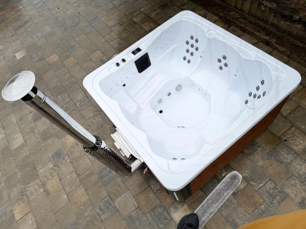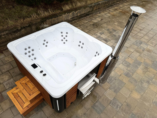 Balia ogrodowa SPA Harmony 6-osobowa z 36 dyszami i piecem v2 Stove opalanym drewnem to idealne rozwiązanie dla osób ceniących komfort, relaks i nowoczesny design. Dzięki wymiarom 220 × 220 cm oferuje przestrzeń dla 6 osób, co sprawia, że jest idealna na rodzinne wieczory lub spotkania z przyjaciółmi. Akrylowa niecka w kolorze Beżowa Perła i elegancka obudowa z termodrewna nadają balii wyjątkowy, naturalny charakter.