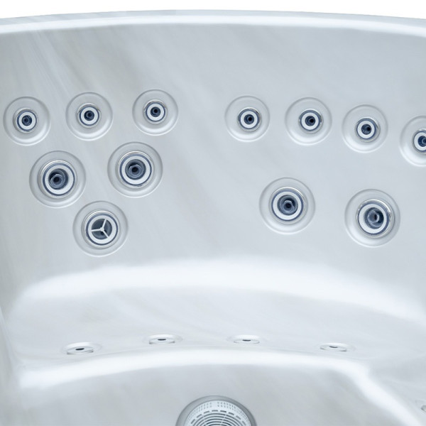Pełna izolacja + Gruba pokrywa termiczna Pokrywa termiczna to praktyczne i niezbędne akcesorium dla Jacuzzi, które pomaga utrzymać ciepło w wodzie, zapobiegając szybkiemu wychłodzeniu oraz zmniejszając zużycie energii. Opcja pełnej izolacji dodatkowo zwiększa skuteczność pokrywy, chroniąc wodę przed utratą ciepła nawet w przypadku niskich temperatur otoczenia. Ponadto, pokrywa skutecznie chroni wannę przed wpadaniem liści i zanieczyszczeń, utrzymując czystość wody.