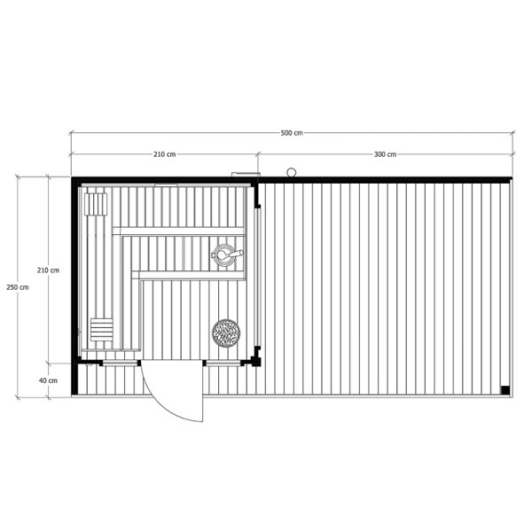 Sauna ogrodowa to jeden z największych modeli dostępnych w naszej ofercie, stworzony z myślą o maksymalnym komforcie użytkowania. Przestronna strefa wejściowa doskonale sprawdzi się jako miejsce do relaksu – po ustawieniu leżaków staje się idealnym azylem na chwilę odpoczynku przed lub po sesji w saunie. Model ten wyposażono w piec oraz dwie ławy ułożone w funkcjonalny kształt litery L.