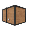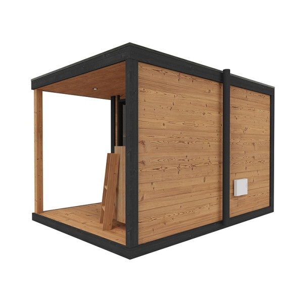 Model Wanda to nowoczesne podejście do tradycyjnej sauny, oparte na zaawansowanej technologii i wysokiej jakości materiałach. Konstrukcja wykonana jest z suszonego do poziomu 7% wilgotności świerkowego balika, który z każdej strony zabezpieczony został specjalistyczną farbą do saun marki Tikkurila. Elementy drewniane na zewnątrz dodatkowo chroni bezbarwny olej, zapewniający trwałość i odporność budynku przez długie lata.