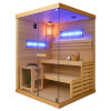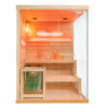 Drewniane siedziska, wykonane z jodły kanadyjskiej, zapewniają maksymalny komfort i trwałość na długie lata. Dodatkowo, sauna wyposażona jest w nowoczesne oświetlenie LED z koloroterapią, które nie tylko tworzy przyjemny klimat, ale również wspomaga relaksację i regenerację organizmu. W zestawie znajdują się również takie akcesoria jak wiadro, chochla, termometr, klepsydra, moduł Bluetooth oraz głośniki, umożliwiające odtwarzanie ulubionej muzyki i tworzenie idealnej atmosfery. Niezwykły klimat zapewniają także dwie duże lampy solne, które dodają uroku oraz wspomagają zdrowie dróg oddechowych i kondycję skóry.