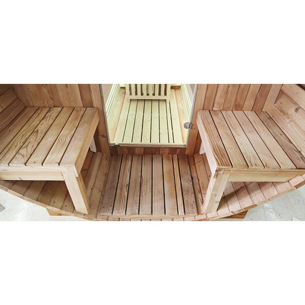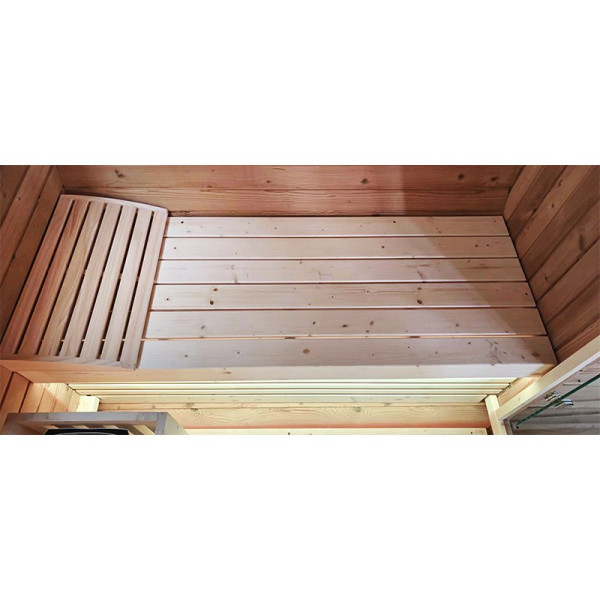 Uwaga: Zalecamy impregnację zewnętrzną sauny po montażu. Brak zabezpieczenia drewna skutkuje przyspieszonym zużyciem materiału. Wnętrze sauny zalecamy zabezpieczyć olejem parafinowym przeznaczonym do saun, co ułatwia utrzymanie czystości i może dodatkowo przedłużyć trwałość drewna.