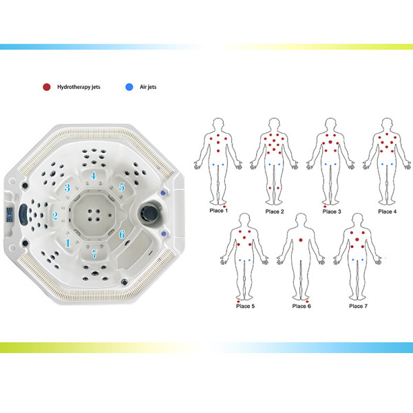 Łączna Ilość miejsc siedzący i leżących w wannie Jackuzzy SPA: 7 sztuk.