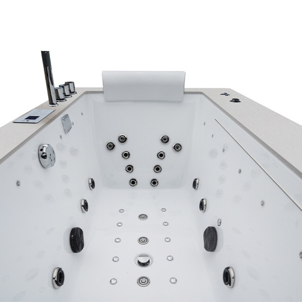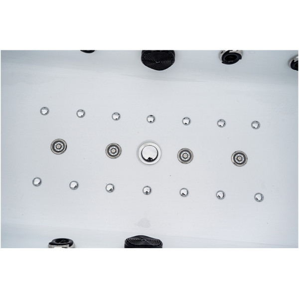 Olejki eteryczne dodane do kąpieli sprawiają, że uzyskujemy silniejsze efekty lecznicze oraz kąpiel staje się przyjemniejsza. Można zastosować tzw. kąpiel perełkową z aromaterapią lub inaczej kąpiel aromatyczną. Takie kąpiele odprężają, pobudzają, wzmacniają, wspomagają podczas okresów związanych z przeziębieniem. Temperatura kąpieli wodnej powinna wahać się w granicach 35-38 C, zaś sama kąpiel aromatyczna nie powinna przekraczać 20-30 minut. Bardzo wysoki standard wyposażenia, wysokiej jakości wykończenia oraz użyte materiały do produkcji, wysokiej jakości akryl, który nie zetrze się nawet po 10 latach!!, odporny na wszelkie zarysowania.