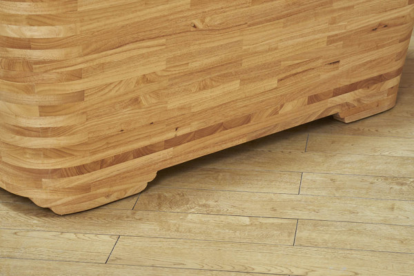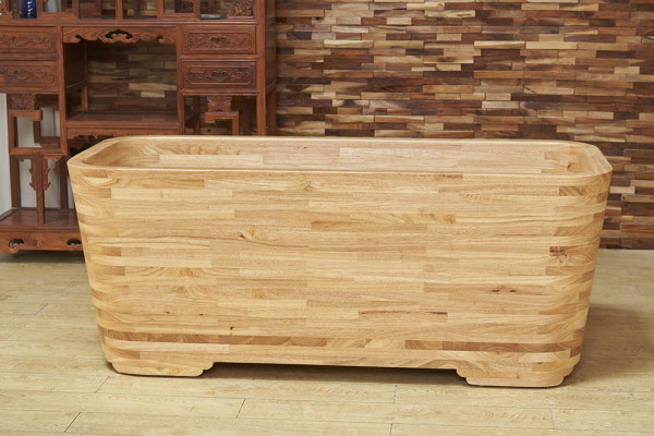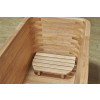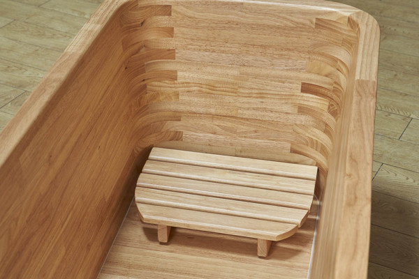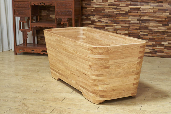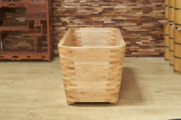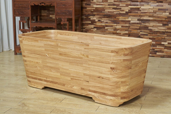 Wanna wolnostojąca o nowoczesnym, prostokątnym kształcie zapewnia komfort podczas siedzącej lub półleżącej kąpieli. Wykonana z wysokiej jakości drewna odpornego na wilgoć i temperaturę, zachowuje trwałość oraz naturalny, przyjemny wygląd. Dolna część wanny posiada falowaną konstrukcję, która ogranicza kontakt z podłożem i zmniejsza ryzyko uszkodzeń.