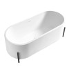 Cztery solidne nóżki wykonane z wysokogatunkowej stali nierdzewnej zapewniają wannie stabilność, trwałość i perfekcyjne wypoziomowanie na każdej powierzchni. Wykończenie w eleganckim, czarnym kolorze dodaje całości nowoczesnego i luksusowego charakteru, idealnie komponując się z designem wanny. To detal, który łączy funkcjonalność z wyjątkową estetyką, tworząc spójną i stylową całość.
