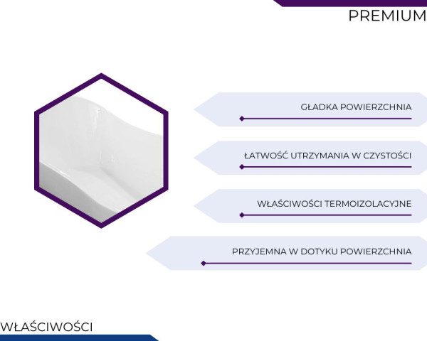 Specyfika powierzchni produktów serii PREMIUM sprzyja bezproblemowemu utrzymaniu higieny i czystości wanny. Zachowanie estetycznego wyglądu powłoki nie jest trudne oraz nie zajmuje zbyt dużo czasu. Gładkość akrylu, jego najwyższa jakość oraz brak trudno dostępnych zakamarków i idealnie dopracowane krawędzie sprawiają, że utrzymanie wanny w czystości jest szybkie, łatwe i nie stwarza problemów.