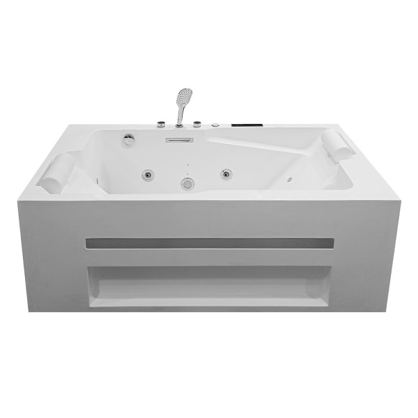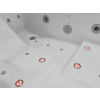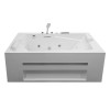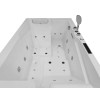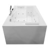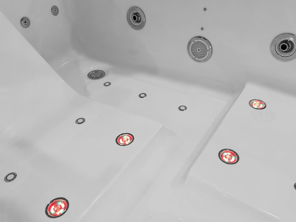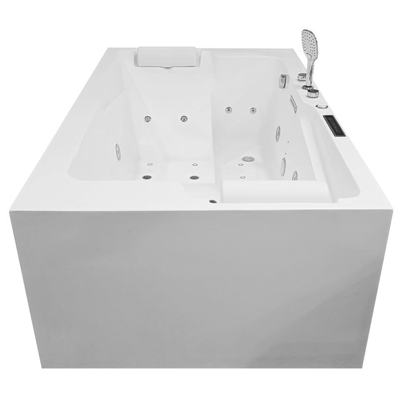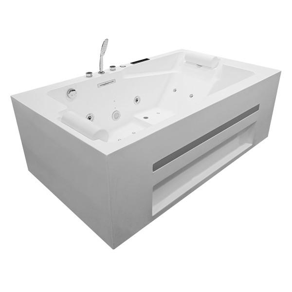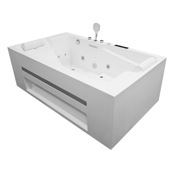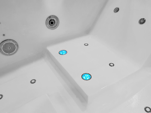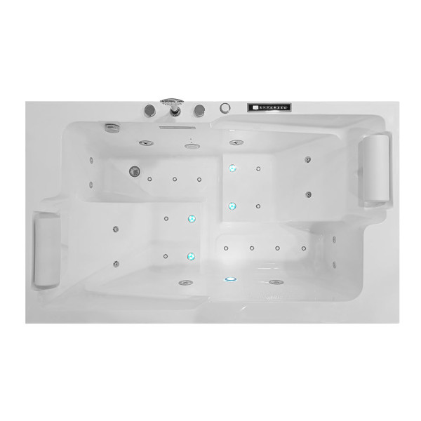 Przestronna wanna z hydromasażem o wymiarach 180 x 108 x 60 cm została zaprojektowana jako komfortowa strefa relaksu dla dwóch osób, oferująca dużą powierzchnię kąpielową i wysoki poziom wygody. Korpus wykonany z trwałego konglomeratu prezentuje się solidnie i estetycznie, a ergonomicznie zaprojektowane wnętrze sprzyja wygodnej pozycji ciała podczas kąpieli we dwoje. Duży format wanny sprawia, że model ten doskonale sprawdzi się w przestronnych łazienkach nastawionych na komfort i relaks. Za intensywne i zróżnicowane doznania odpowiada rozbudowany system 27 dysz, łączący hydromasaż wodny i powietrzny. Dysze wodne wykonane ze stali nierdzewnej zapewniają skuteczny masaż wybranych parti ciała, natomiast dysze powietrzne delikatnie otulają ciało strumieniem powietrza, potęgując efekt odprężenia. Możliwość równoległej pracy pompy wodnej i powietrznej pozwala uzyskać bardziej dynamiczny i efektywny masaż. Komfort użytkowania podnoszą generator ozonu, czujniki poziomu wody oraz podwodne oświetlenie SPA z siedmioma wariantami kolorystycznymi.