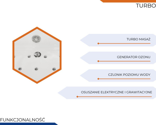 Zastosowanie innowacyjnego systemu turbo masażu, który wykorzystuje koordynację pompy wodnej z pompą powietrza, wyniosło poziom doznań podczas hydromasażu na nowy, wyższy poziom.