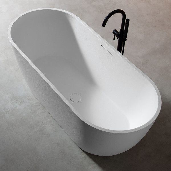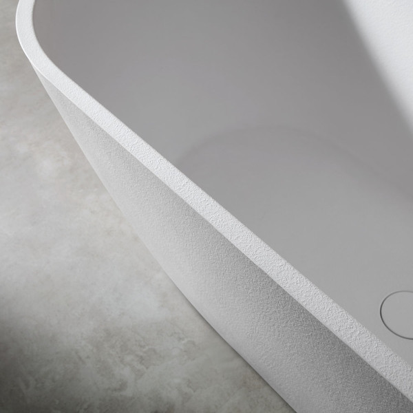 Powierzchnia wanny, inspirowana fakturą kamienia, nadaje jej elegancki i naturalny wygląd, który doskonale komponuje się z nowoczesnymi oraz klasycznymi aranżacjami wnętrz. Delikatnie wyczuwalna struktura dodaje stylowego charakteru, a jednocześnie jest przyjemna w dotyku. Kamienna faktura sprawia, że wanna nie tylko zachwyca estetyką, ale także zapewnia komfortowe i relaksujące doznania podczas kąpieli.