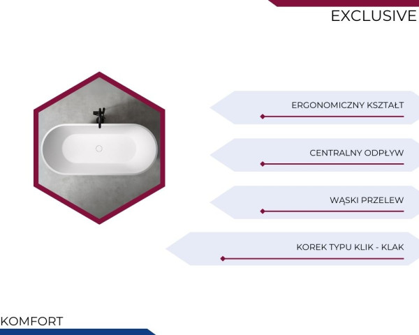Seria EXCLUSIVE to najwyższej jakości materiały, innowacyjne rozwiązania, a także wyjątkowy element wystroju każdej łazienki, który spełnia oczekiwania najbardziej wymagających użytkowników. Wybierając wannę wolnostojąca z kolekcji EXCLUSIVE, inwestujesz w luksusowy komfort, który będzie służył latami, zachowując swoją estetyczną formę.