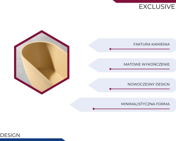 Powierzchnia wanny, inspirowana fakturą kamienia, nadaje jej elegancki i naturalny wygląd, który doskonale komponuje się z nowoczesnymi oraz klasycznymi aranżacjami wnętrz. Delikatnie wyczuwalna struktura dodaje stylowego charakteru, a jednocześnie jest przyjemna w dotyku. Kamienna faktura sprawia, że wanna nie tylko zachwyca estetyką, ale także zapewnia komfortowe i relaksujące doznania podczas kąpieli.