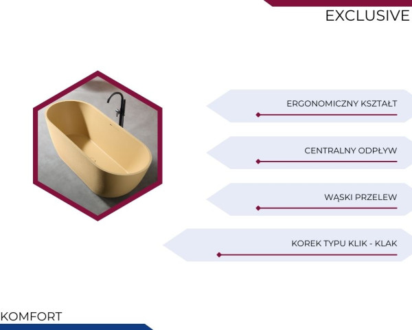 Seria EXCLUSIVE to najwyższej jakości materiały, innowacyjne rozwiązania, a także wyjątkowy element wystroju każdej łazienki, który spełnia oczekiwania najbardziej wymagających użytkowników. Wybierając wannę wolnostojąca z kolekcji EXCLUSIVE, inwestujesz w luksusowy komfort, który będzie służył latami, zachowując swoją estetyczną formę.