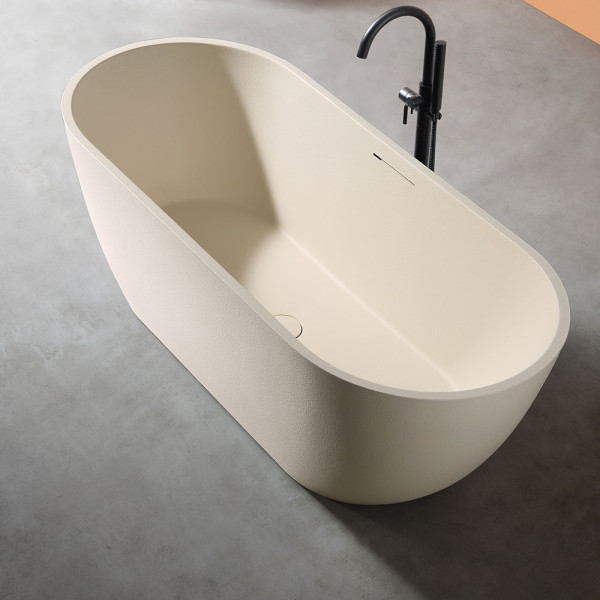 Powierzchnia wanny, inspirowana fakturą kamienia, nadaje jej elegancki i naturalny wygląd, który doskonale komponuje się z nowoczesnymi oraz klasycznymi aranżacjami wnętrz. Delikatnie wyczuwalna struktura dodaje stylowego charakteru, a jednocześnie jest przyjemna w dotyku. Kamienna faktura sprawia, że wanna nie tylko zachwyca estetyką, ale także zapewnia komfortowe i relaksujące doznania podczas kąpieli.