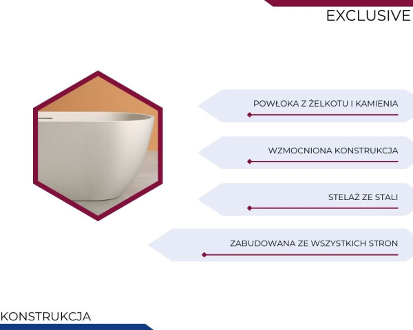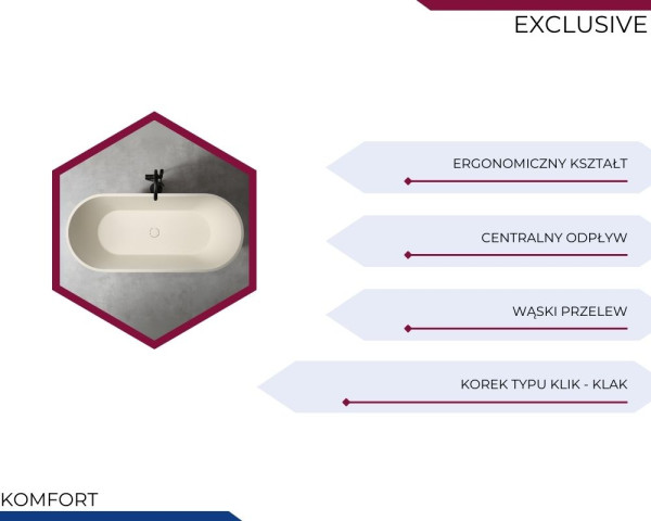 Seria EXCLUSIVE to najwyższej jakości materiały, innowacyjne rozwiązania, a także wyjątkowy element wystroju każdej łazienki, który spełnia oczekiwania najbardziej wymagających użytkowników. Wybierając wannę wolnostojąca z kolekcji EXCLUSIVE, inwestujesz w luksusowy komfort, który będzie służył latami, zachowując swoją estetyczną formę.
