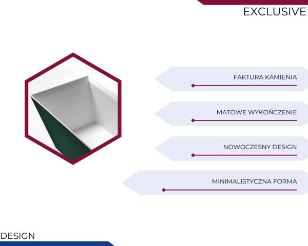 Powierzchnia wanny, inspirowana fakturą kamienia, nadaje jej elegancki i naturalny wygląd, który doskonale komponuje się z nowoczesnymi oraz klasycznymi aranżacjami wnętrz. Delikatnie wyczuwalna struktura dodaje stylowego charakteru, a jednocześnie jest przyjemna w dotyku. Kamienna faktura sprawia, że wanna nie tylko zachwyca estetyką, ale także zapewnia komfortowe i relaksujące doznania podczas kąpieli.