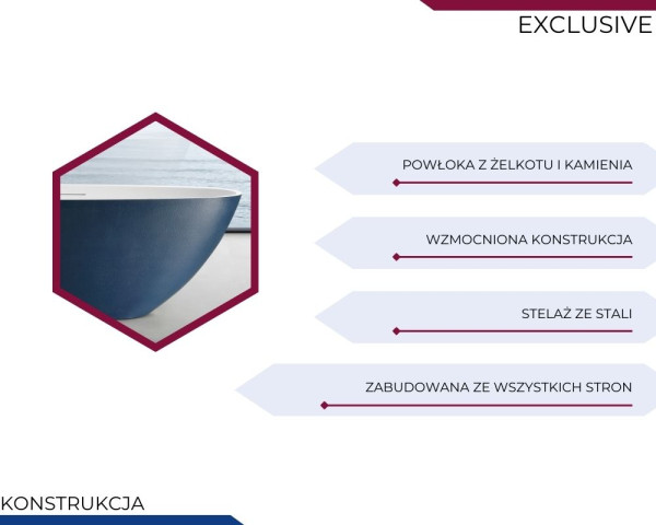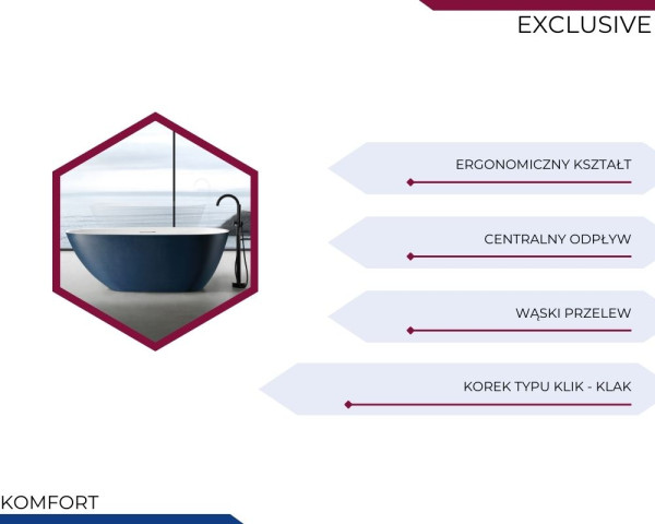 Seria EXCLUSIVE to najwyższej jakości materiały, innowacyjne rozwiązania, a także wyjątkowy element wystroju każdej łazienki, który spełnia oczekiwania najbardziej wymagających użytkowników. Wybierając wannę wolnostojąca z kolekcji EXCLUSIVE, inwestujesz w luksusowy komfort, który będzie służył latami, zachowując swoją estetyczną formę.